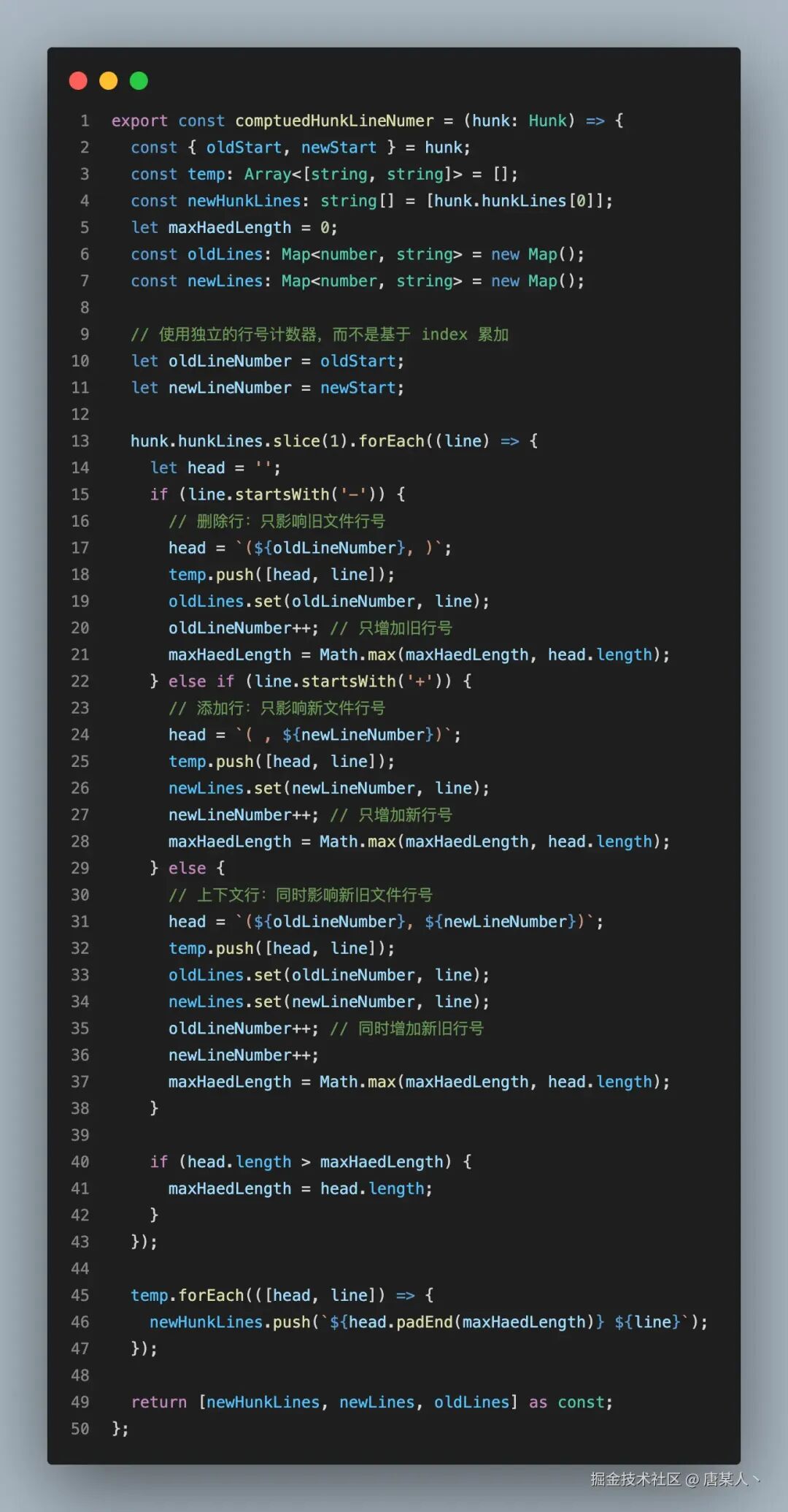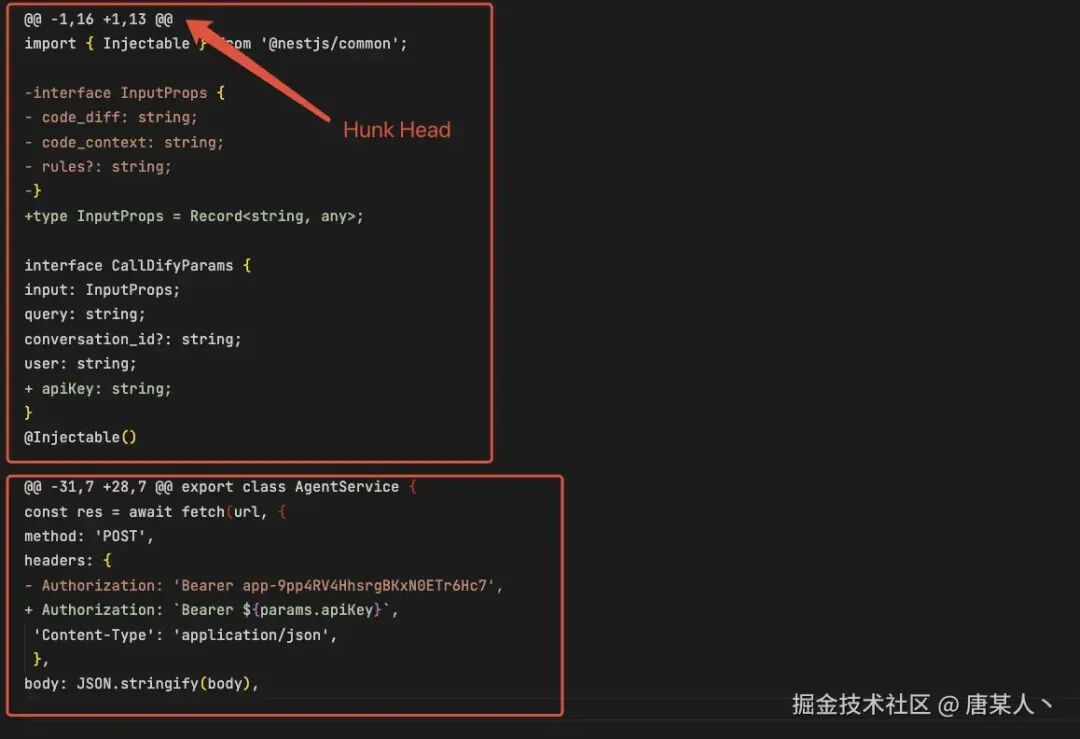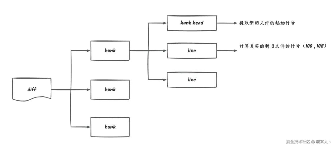 有了 Diff 内容后,扩展行号、文件路径,拼成一个字符串