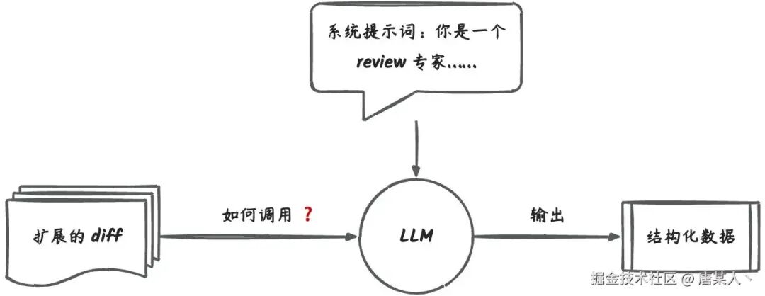 现在我们已经有了**「系统提示词、处理好的 diff 内容」**,接着就是如何调用 LLM 分析结果。