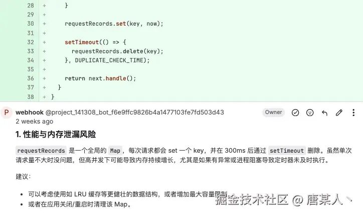 目前在我们团队,已经全面的在使用 AI 进行 Review 了,涵盖了前端、后端大大小小 20 + 的项目。得益于在集团内可以使用像(“GPT-4.1、 Calude”)这样更大上下文、更强推理能力的模型,所以整体效果是非常不错的。有时候一些很细微的安全隐患、性能、业务逻辑等问题,AI 都能比人更容易发现。
