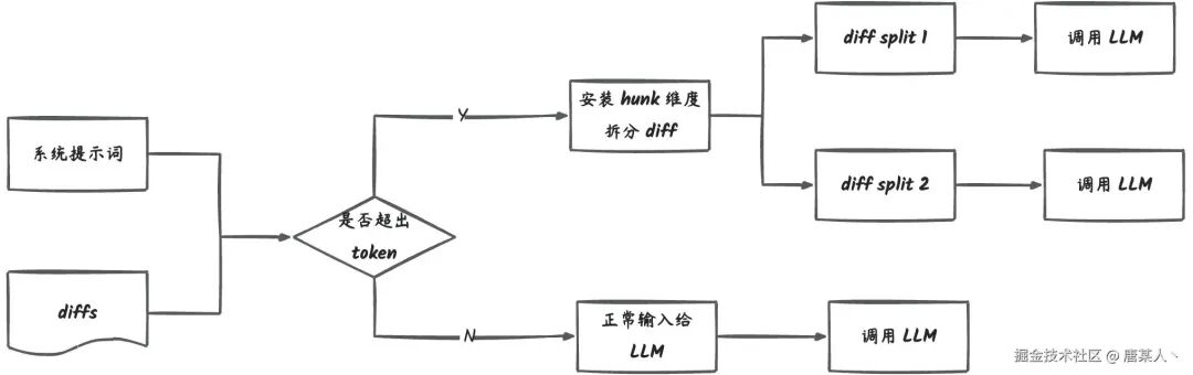 一旦你输入的提示词 + diff 内容超过这个上下文,就会报错导致 LLM 无法正常解析。这时我们就不得不把输入的 diff 拆分成多份,然后并行调用 LLM,最后整合数据。