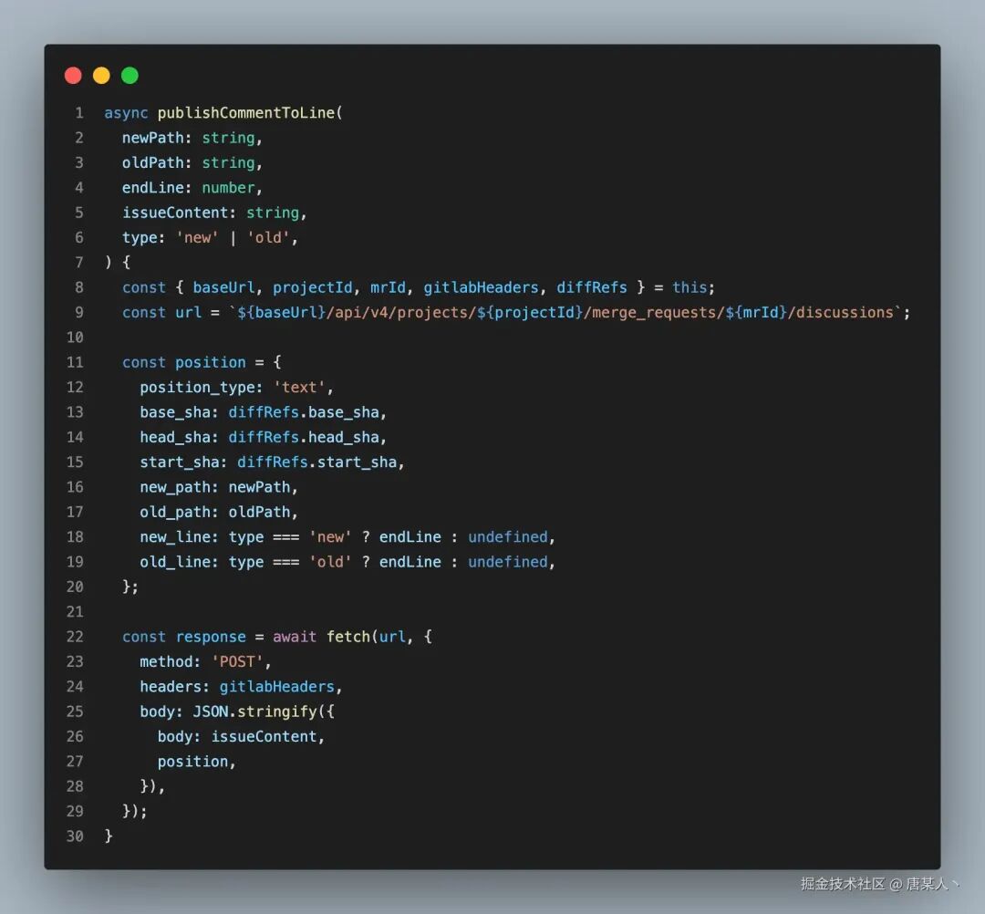 在有了处理好的 review 数据以后,我们就可以调用 GitLab 的接口发送评论了