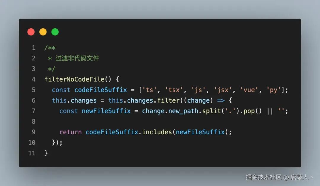 因为并不是所有的文件都需要让 LLM 进行 review ,例如像 package.json、package-lock.json 等等。所以需要把这部分非代码文件过滤出来。