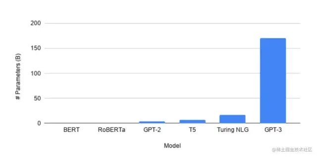此后 2019 年的 GPT-2、2020 年的 GPT-3,核心迭代思路都是利用 “钞能力” 扩大模型规模,GPT-2 的参数总量是 15 亿,GPT-3 更是提高到了惊人的 1750 亿,而截至今天,这条 “钞能力” 路线依然没有摸到天花板, 还在往下继续。