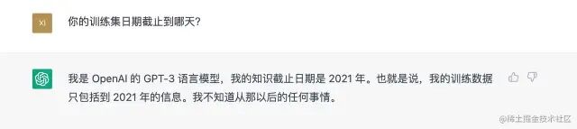 目前大家使用的 ChatGPT 是从 GPT3.5 衍生出来的 AI 产品,其训练集并不是互联网上实时的数据,而是来自截止到2021年的数据。