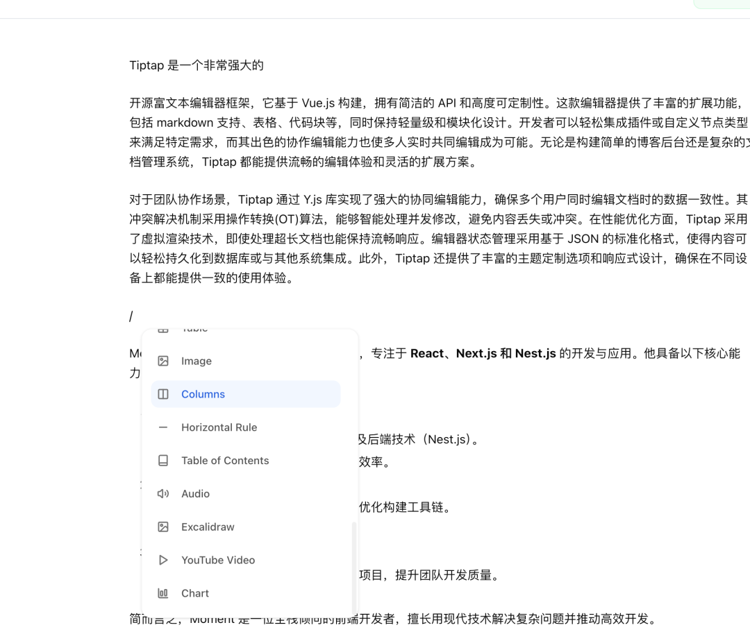 借助 Tiptap 强大的扩展功能,我们可以在原有基础上轻松添加所需的功能,甚至可以在 Tiptap 上扩展整个页面。