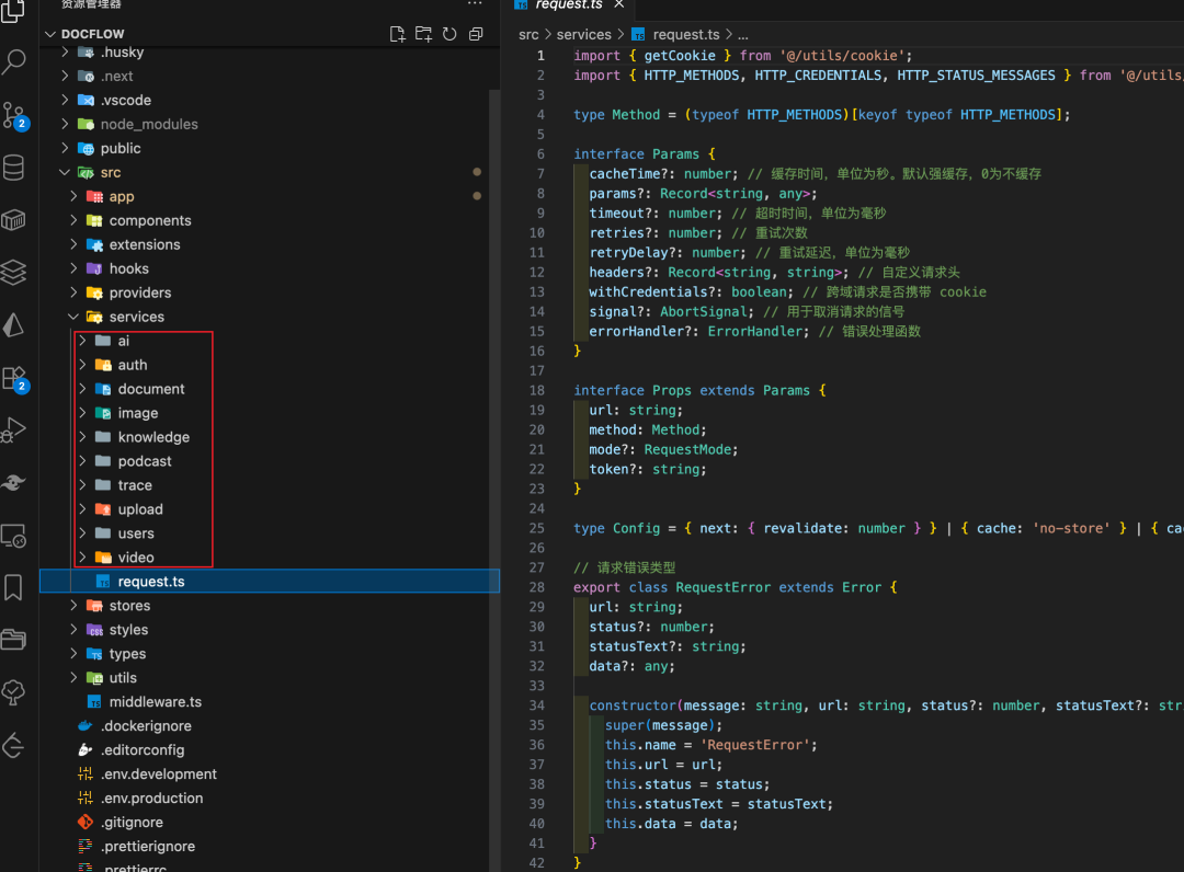 service 目录下的 request.ts 为全局的 fetch 封装: