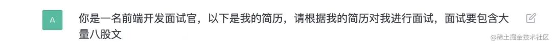 提问内容需要对它进行一个身份设定,它是一名前端开发的面试官。