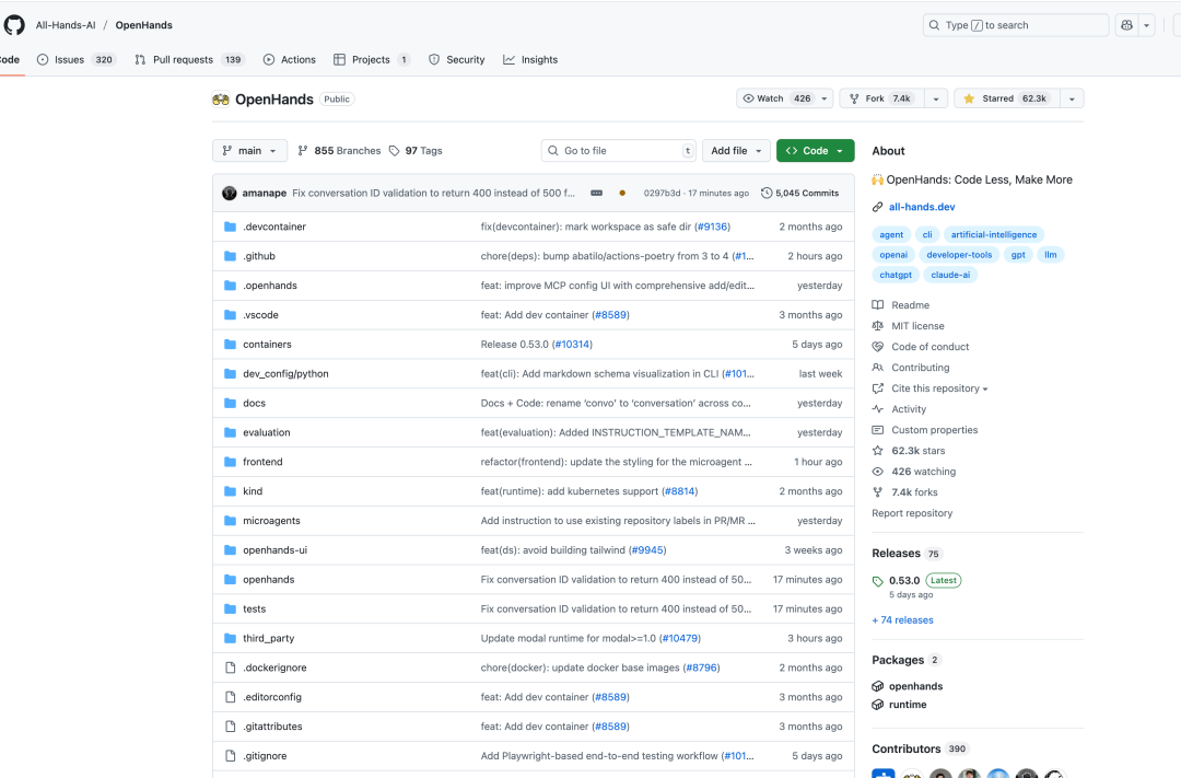 这个项目中包含了前端和后端的所有代码,原名为 “OpenDevin”。从名字你应该就能看出来这个是 Devin 的开源版本,里面的项目代码复杂度很高,适合进阶学习。