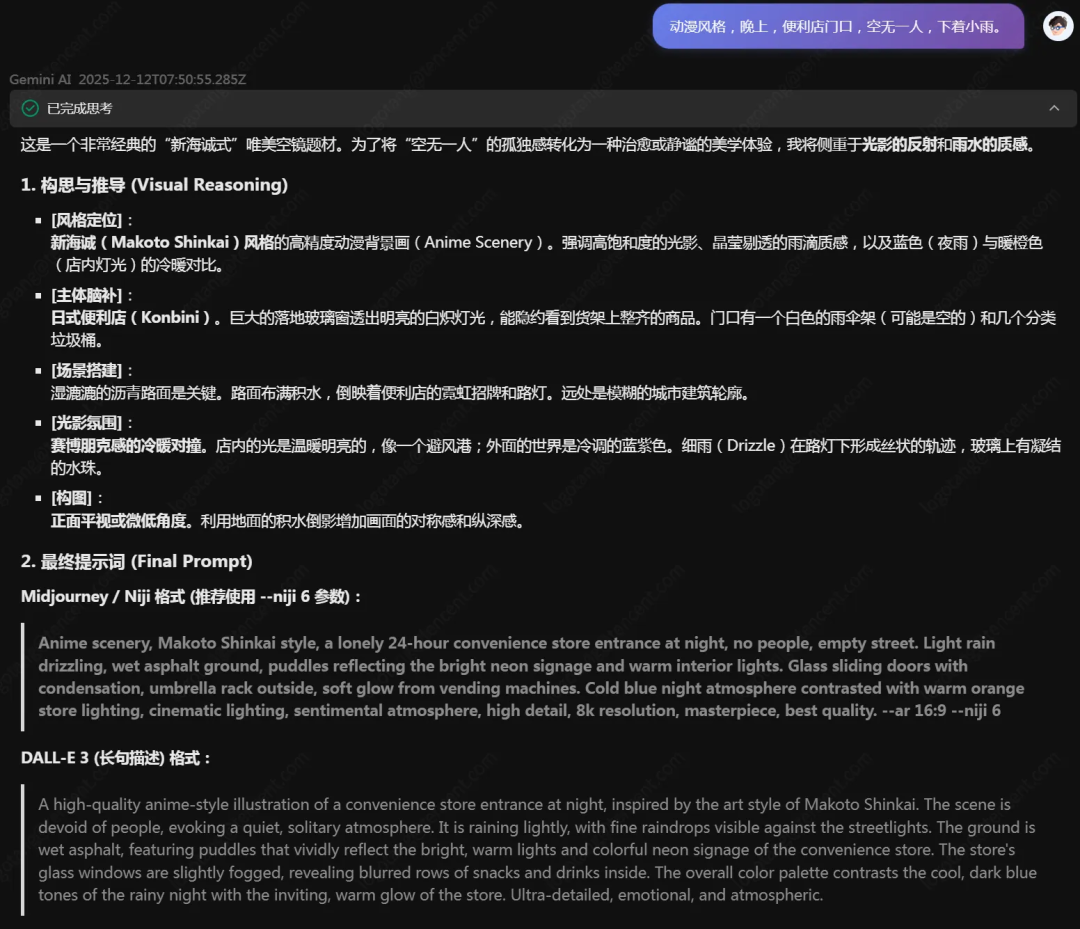最后,复制它给你的最终提示词,直接丢到 BANANA(或 MJ 还是别的什么)出图就好了:
