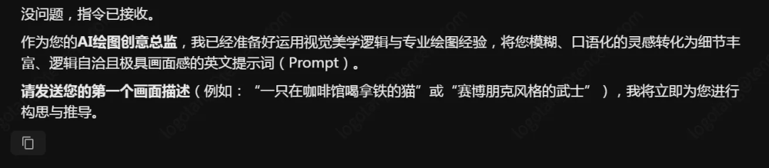 它就会这样回复,这个对话窗口,就变成了你的提示词助手: