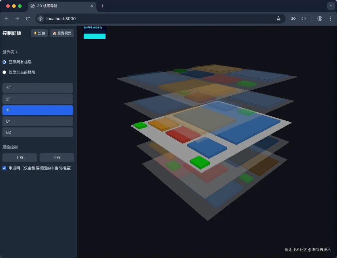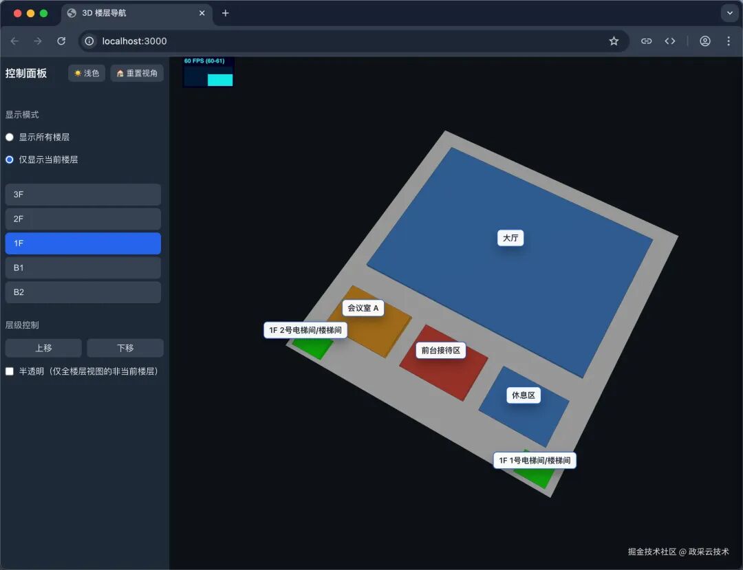 随着这些能力逐步落地,整个 Demo 也从 “静态模型展示” 演进为一个可探索、可交互的 3D 建筑场景。