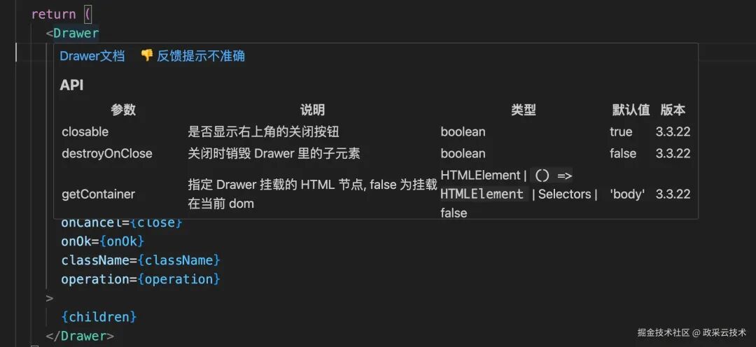 组件库使用缺乏 “所见即所得” 的提示体验:在日常开发中,查组件属性、查用法、查文档也是高频动作,但在编辑器中并没有统一的补全、提示与跳转能力。