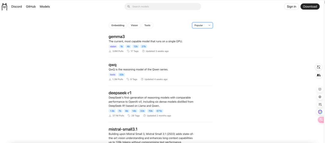 安装 https://ollama.com/,一个可以方便的本地运行开源大语言模型的软件。