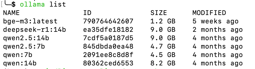 安装完成之后在命令行执行 ollama pull qwen2.5:7b 随便拉取一个模型。