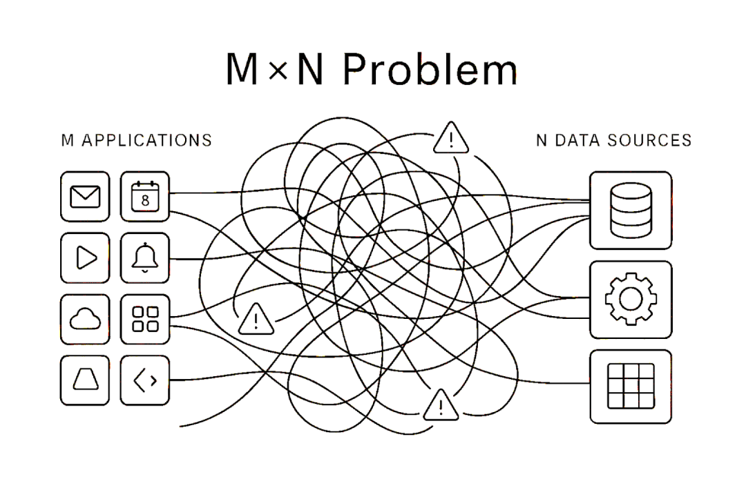 如果没有 MCP 或者某种标准,那么 LLM 和 外部环境的互动就会变得非常混乱,不同的 App 开发者需要为不同的 LLM 适配不同的外部数据消费策略和对接方式,而想要为 LLM 提供 Context 的 App (如 Github、Notion)也需要考虑针对不同的 LLM 做出相应的适配。这会造成大量的重复繁琐的适配工作,非常不利于整个社区的发展。