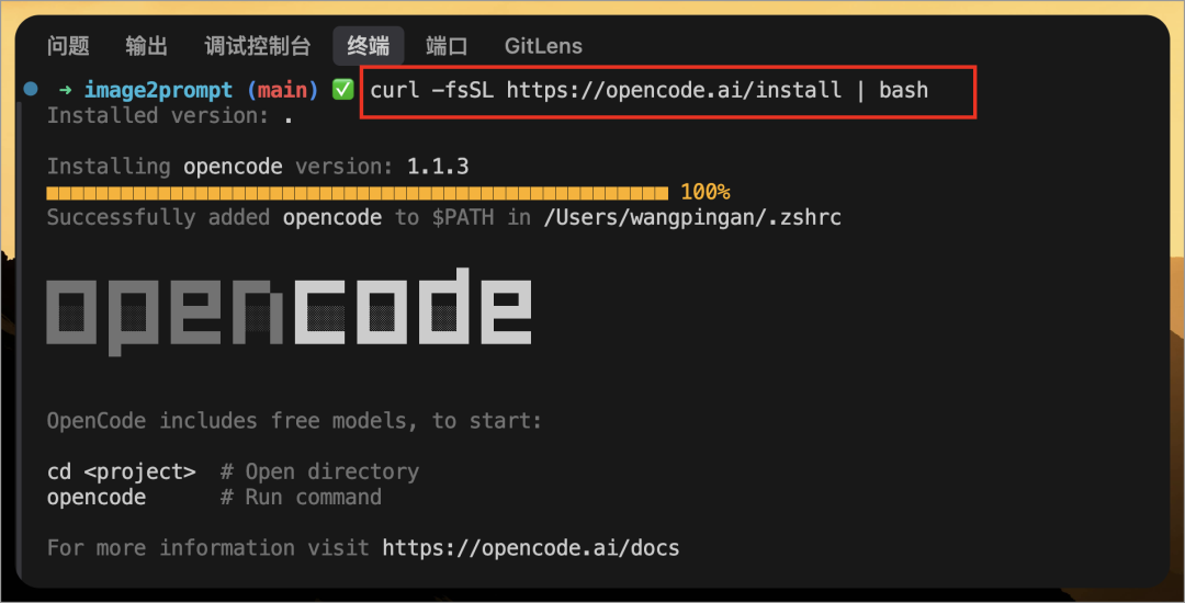 安装完成后,即可在 IDE 的终端中,输入 opencode命令使用: