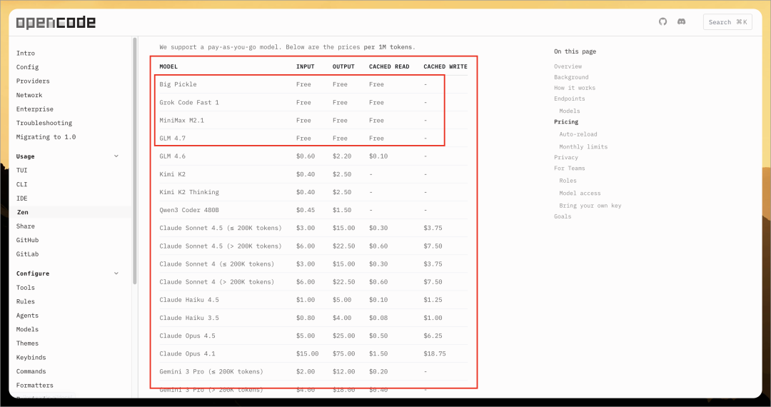 OpenCode Zen 是由 OpenCode 团队提供的经过测试和验证的模型列表,属于官方推荐的精选模型,目前还处在测试阶段。