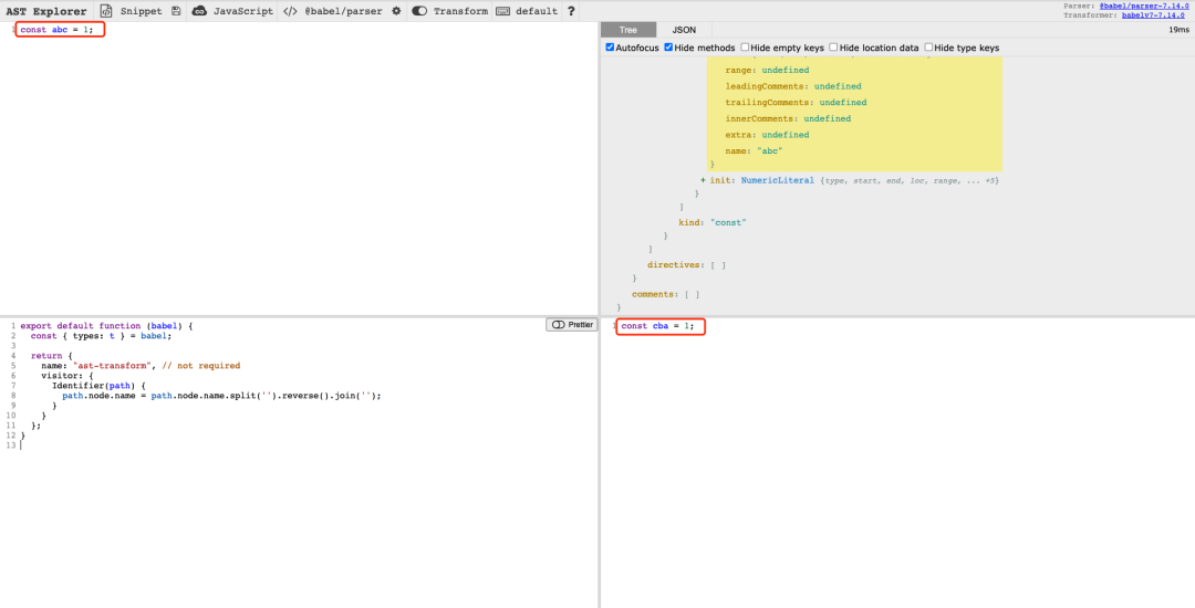 上述功能也可通过 https://astexplorer.net/ 在线查看