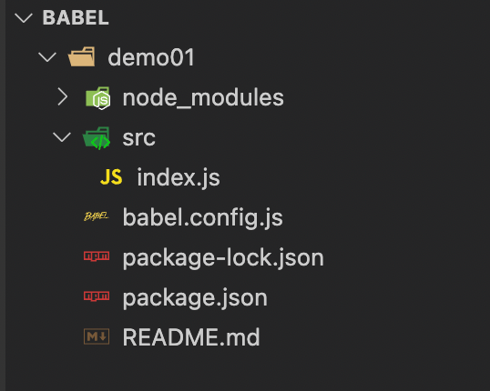 npm install --save-dev @babel/core @babel/cli @babel/preset-env目录结构如下
