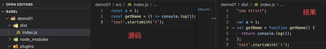 - 执行命令 npm run babel,看转换结果