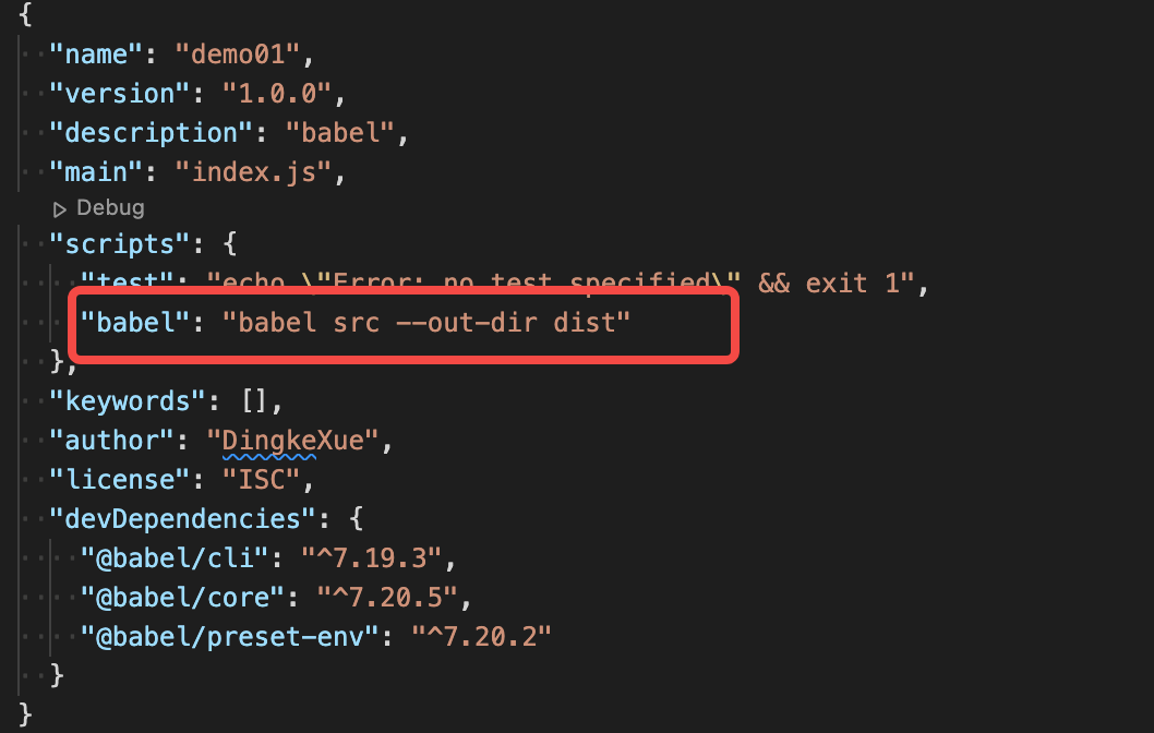package.json 中新增 babel 命令