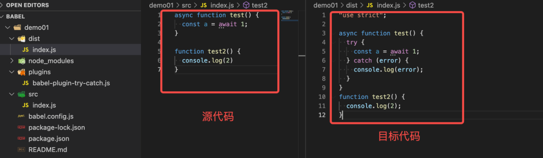 async function getName() { try { // code const name = await api.getName(); } catch(error) { // do somethine }}上述每个这样的函数我们都需要封装一次,我们能否把封装的工作交给 babel 来处理呢?答案是肯定的,让我们一起看看怎么实现?