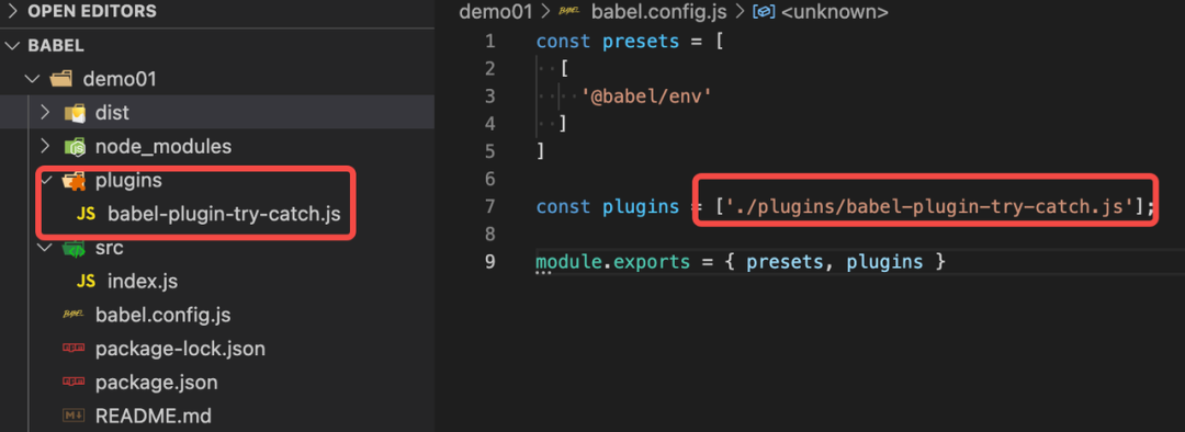我们先给插件起个名字:babel-plugin-try-catch