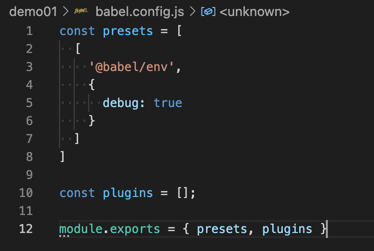 配置中的 debug 用于打印 babel 命令执行的日志;