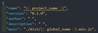 const multiMeta = { project_name: LCProjectName, global_name: answers.name}上述代码意味着模板文件内要修改的字符串改成 或者 形式,当被替换时,将改成后面对应的模板字符。下图是模板文件:接下来我们把