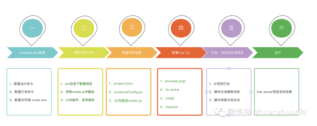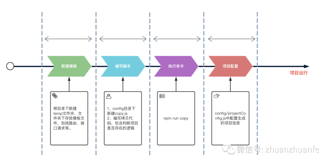 我们知道在package.json中有项目启动、打包的命令,我们可以从这里入手。我们的思路大概是这样的: