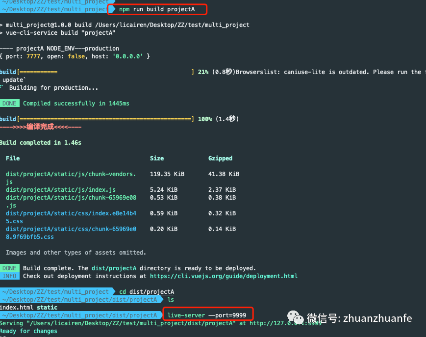 npm run build:projectAcd dist/projectAlive-server --port=9999live-server是一个具有实时加载功能的小型服务器,在项目中用 live-server 作为一个实时服务器查看开发的网页或项目效果