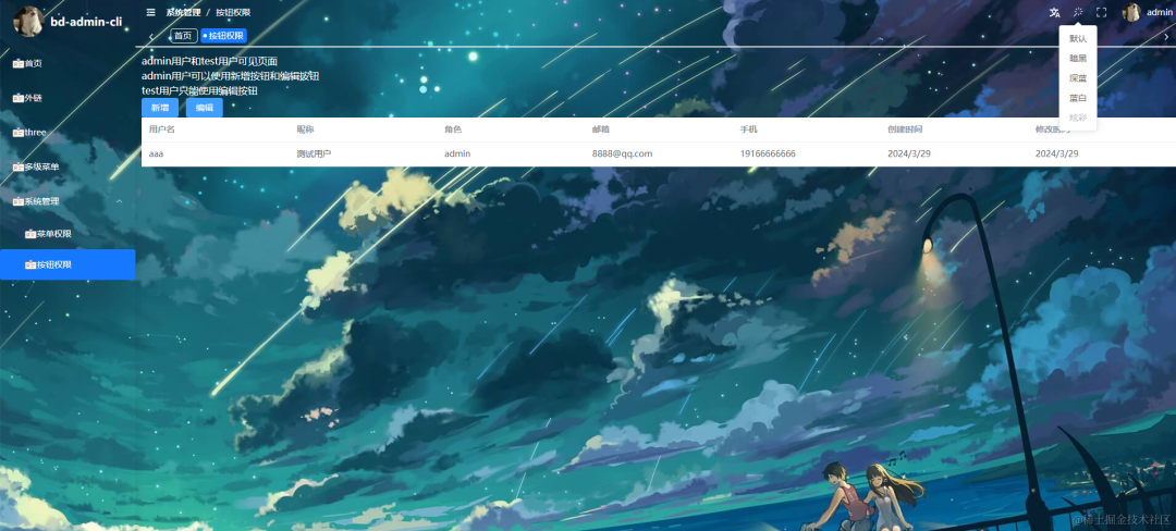 自定义后台管理功能模块:权限配置 or 多语言 or 动态换肤 项目功能由你选择