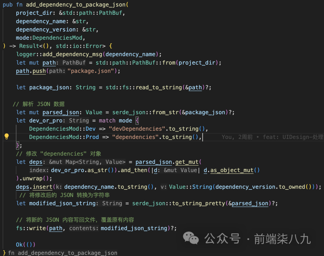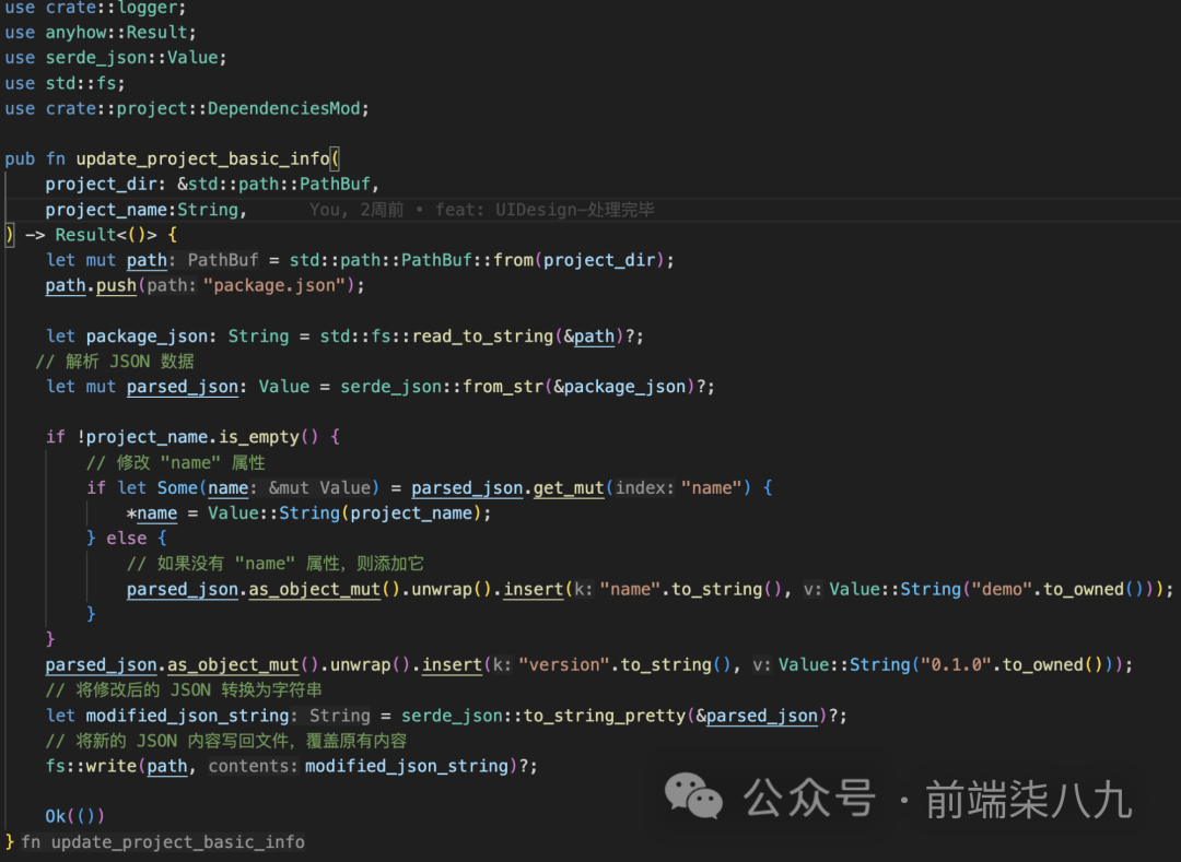 其实,它的处理逻辑和update_project_basic_info很类似,也是通过project_dir找到package.json, 然后利用serde_json处理。