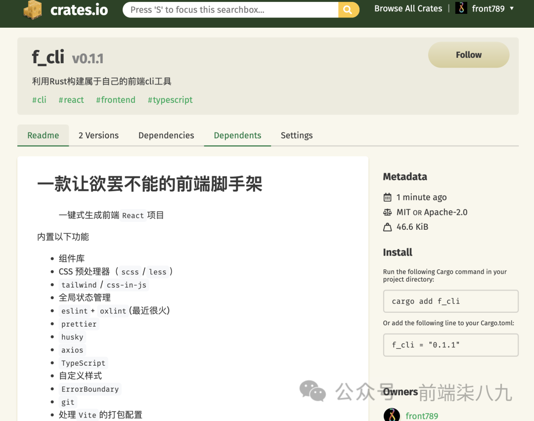 React项目的初始化,对Vue项目没做处理,其实处理逻辑也是照猫画虎最后,现在这个版本只限通过 crates.io[1] 进行下载,后期我们会将其发布到