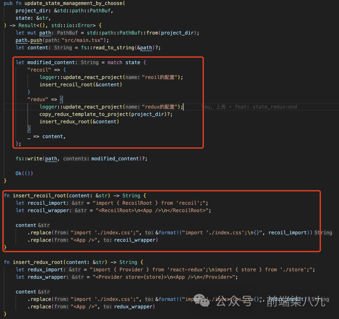其实上面的方法也很简单就是,基于state的值做处理,从上面看到我们只处理了redux/recoil。 然后唤起对应的insert_xx_root()将指定的信息插入到已有的文件中。