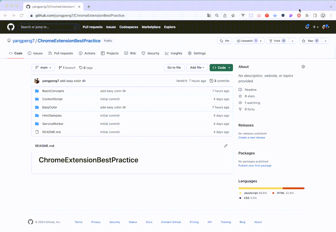 document.addEventListener("mousedown", function (e) { let easyPanel = document.getElementById(easyPanelId); if (easyPanel == null) { return; } const cpStyle = window.getComputedStyle(e.target); easyPanel.contentWindow.postMessage( { type: "computedStyle", data: JSON.stringify({ color: cpStyle.color, backgroundColor: cpStyle.backgroundColor, }), }, "*" );});以上就是我们实现的元素颜色选择插件的核心代码,更多细节可以参考:https://github.com/yangpeng7/ChromeExtensionBestPractice