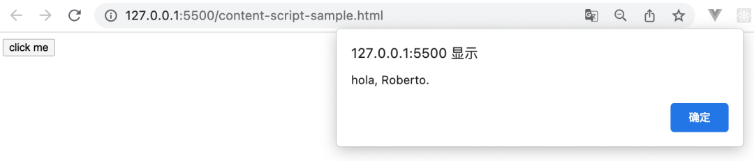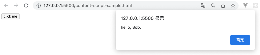 <html> <button id="mybutton">click me</button> <script> var greeting = "hello, "; var button = document.getElementById("mybutton"); button.person_name = "Bob"; button.addEventListener( "click", () => alert(greeting + button.person_name + "."), false ); </script></html>Content Script 注入