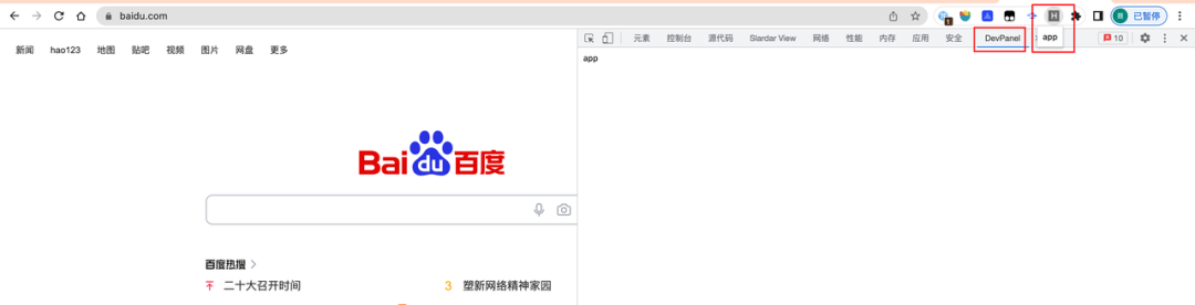 <!-- devtools.html --><!DOCTYPE html><html lang="en"><head> <meta charset="UTF-8"> <meta http-equiv="X-UA-Compatible" content="IE=edge"> <meta ></script></body></html>// devtools/index.js// 创建扩展面板chrome.devtools.panels.create( // 扩展面板显示名称 "DevPanel", // 扩展面板icon,并不展示 "panel.png", // 扩展面板页面 "../index.html", function (panel) { console.log("自定义面板创建成功!"); });然后安装插件打开 F12 即可看到 Devtools 面板: