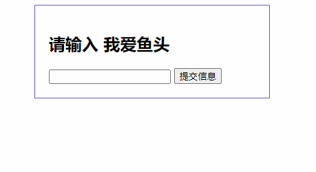 <section class="section"> <form> <h1>请输入 我爱鱼头</h1> <input >提交信息</button> </form></section>效果如下: