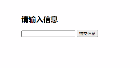 <section class="section"> <h1>请输入信息</h1> <form action="/userInfo"> <input > </form></section>效果如下: