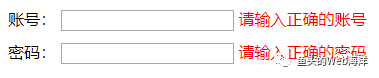 input[required]:focus:invalid + span { display: inline;}虽然我们不能通过 输入错误 这个状态来处理,但是我们可以监听用户聚焦的行为来实现。