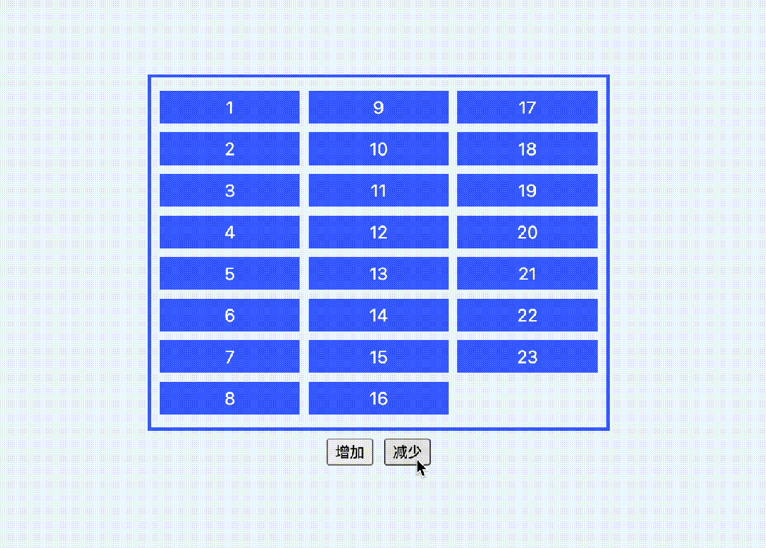 .list{ /**/ grid-auto-flow: column; grid-template-rows: repeat(var(--n), 1fr);}这样就能动态排列了