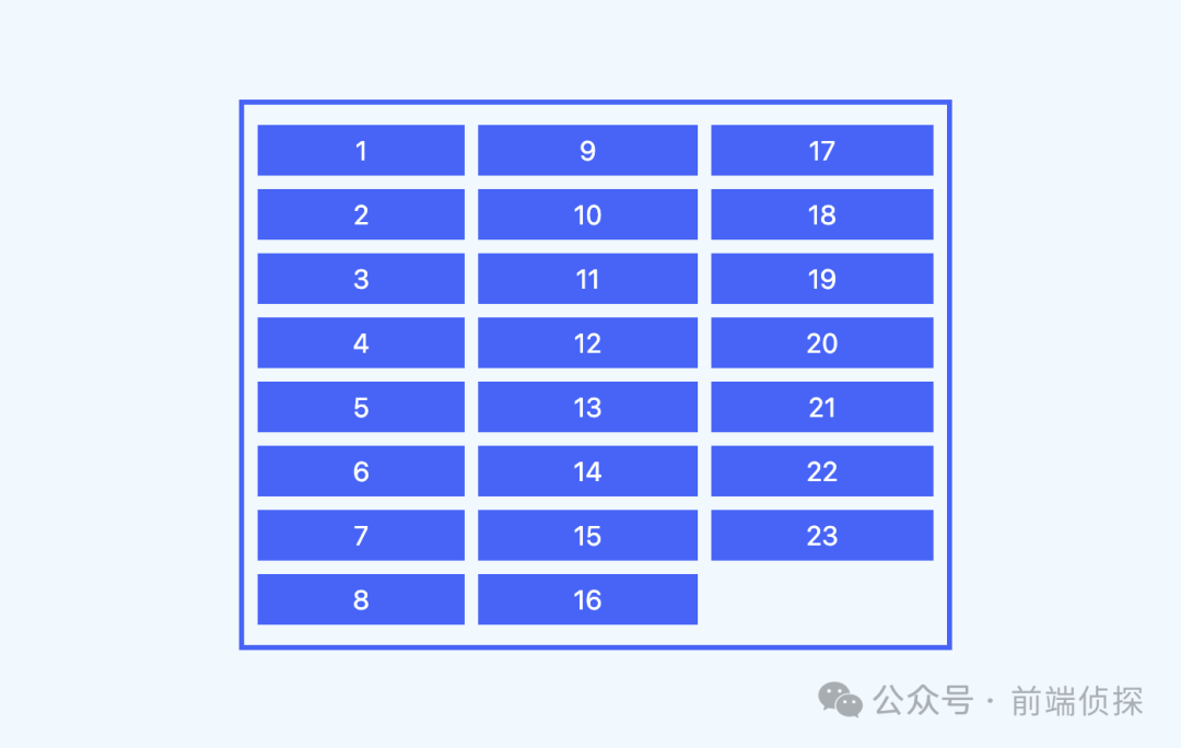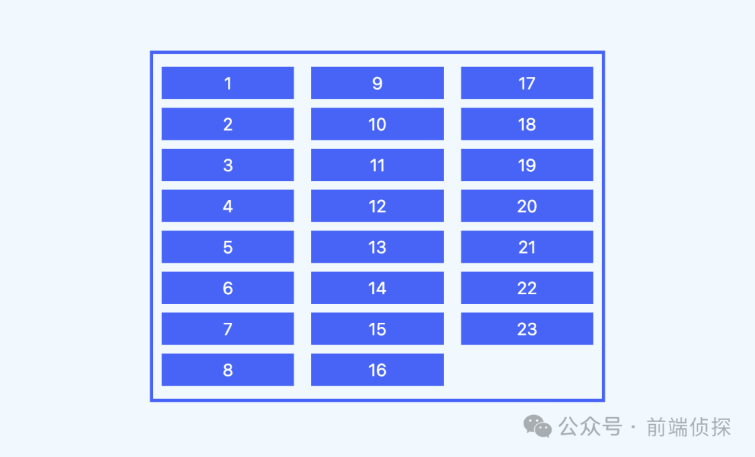 .list{ column-count: 3; /* 分栏数量 */}无需任何其他规范,效果就出来了