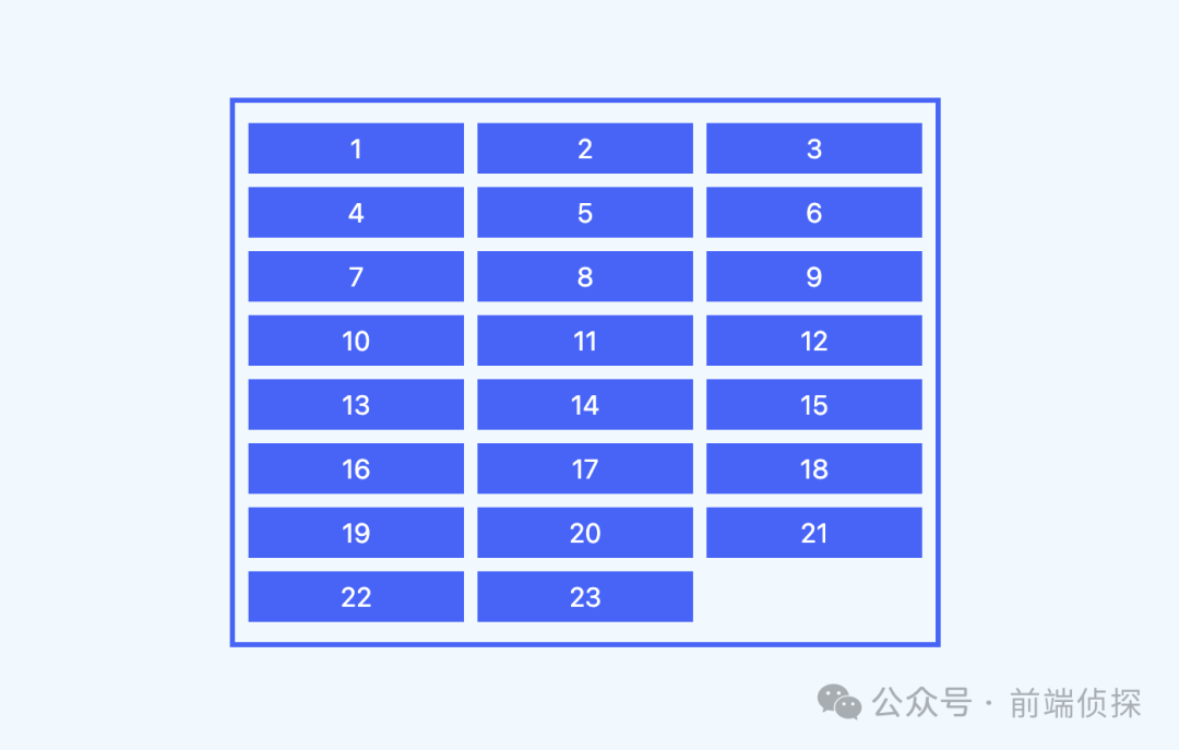 有些同学可能会想到用 JS将元素数组分成三份,做成一个二维数组,然后每个数组嵌套一层容器水平排列就行了。其实呢,纯 CSS 也是可以完成的,一起来看看吧