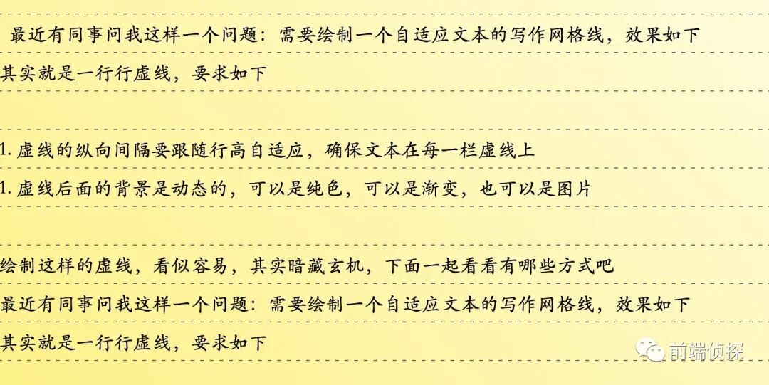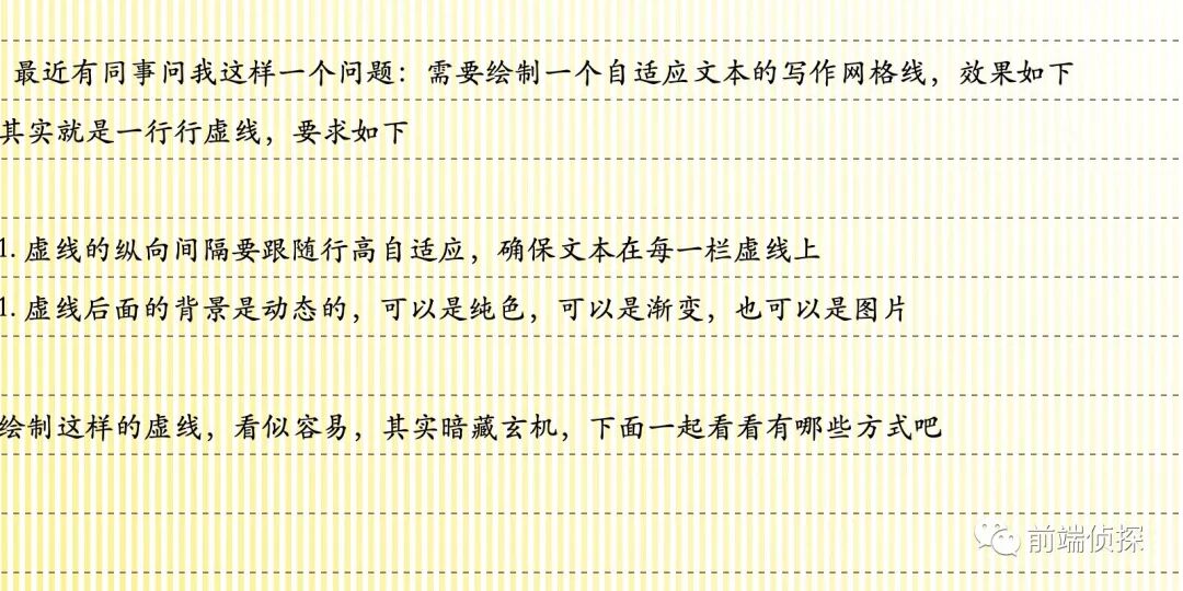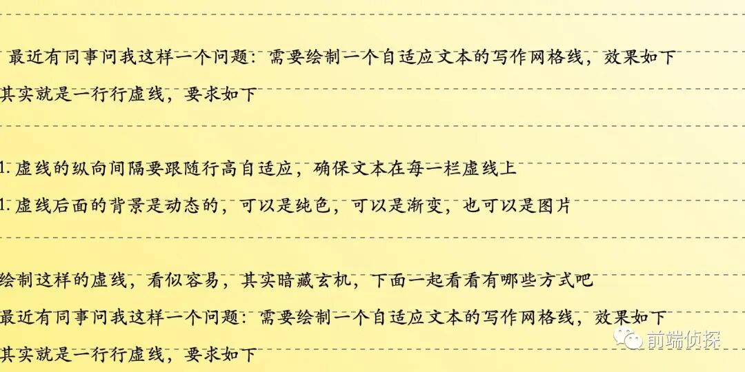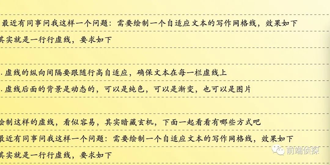 虚线的纵向间隔要跟随行高自适应,确保文本在每一栏虚线上