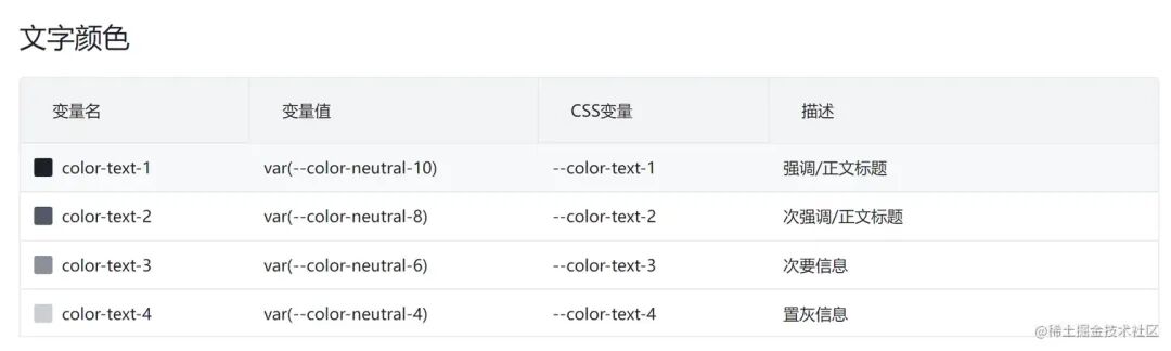 举个栗子,使用 Tailwind 的配置来实现Arco Design的字体颜色规范:
