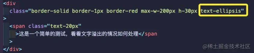 可以看到,我们省略了那个隐藏的换行符,所以文字不会自动换行了,那么整段文字都显示到了一行上。此时我们再加上我们的两个属性,overflow-hidden和text-ellipsis,神奇的一幕就发生了。