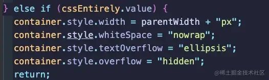 container的宽度小于父元素的宽度,很容易可以猜到现在我们的文字内容是完全可以容纳的,不需要做特殊处理。第二个分支,当我们的 container 宽度大于了父亲元素的宽度,那么我们可以通过传递 props 来区分是否需要保留后缀,如果不需要保留后缀,我们直接给