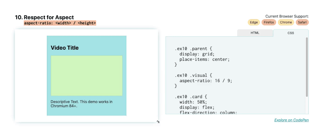 10. 保持宽高比:aspect-ratio: <width> / <height>