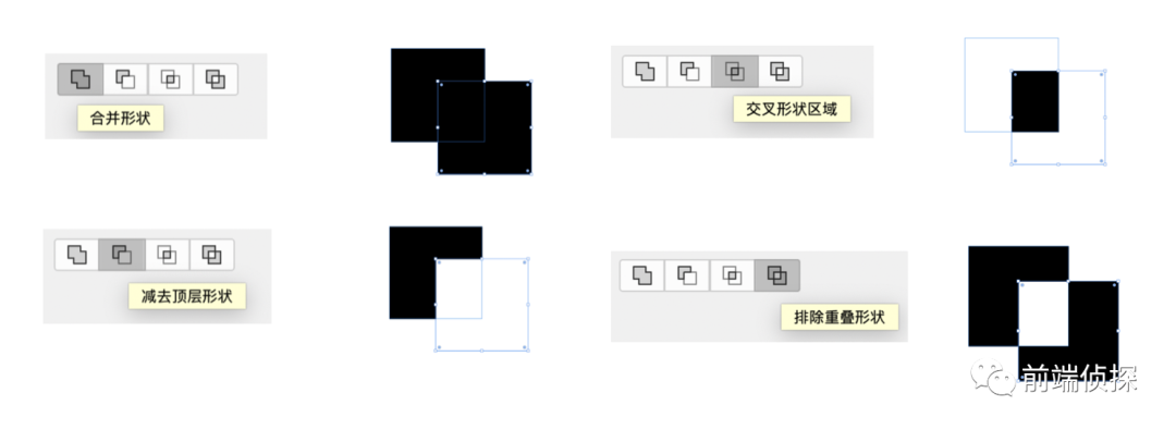 /* Keyword values */mask-composite: add; /* 叠加(默认) */mask-composite: subtract; /* 减去,排除掉上层的区域 */mask-composite: intersect; /* 相交,只显示重合的地方 */mask-composite: exclude; /* 排除,只显示不重合的地方 */相信在很多图形设计软件中都见到类似的操作(下面是 photoshop)